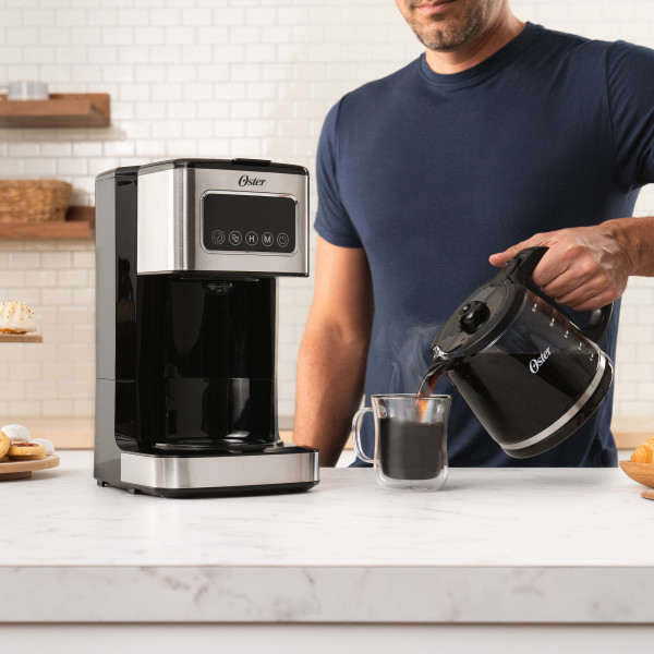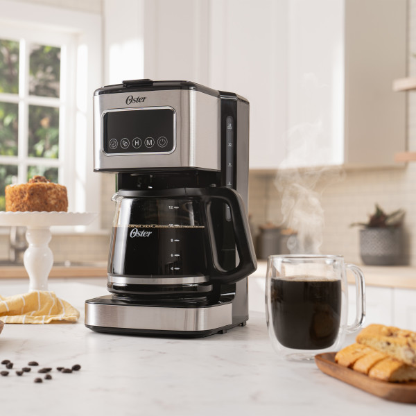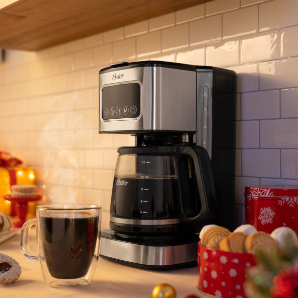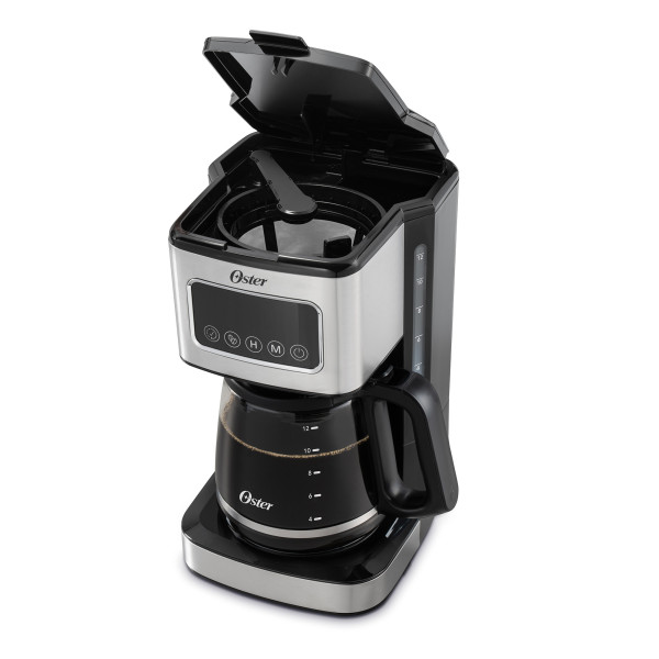 La Cafetera programable de 12 tazas con pantalla táctil de Oster® es un complemento elegante para cualquier cocina. Disfruta de la óptima funcionalidad para elegir la hora de preparación y qué tipo de café deseas, simplemente tocando la pantalla táctil.? Incluye una cuchara medidora para facilitar la adición de la cantidad correcta de granos de café y también un filtro reutilizable para mayor ahorro y menos desperdicios.
